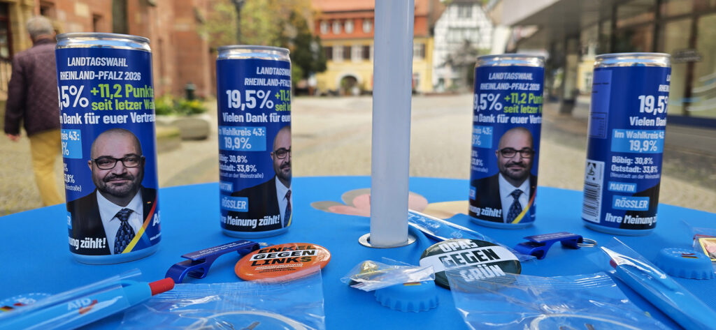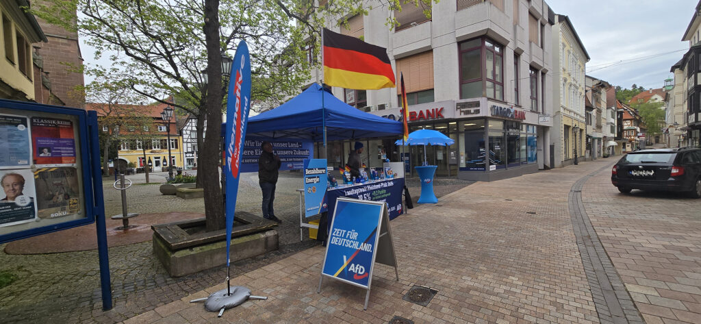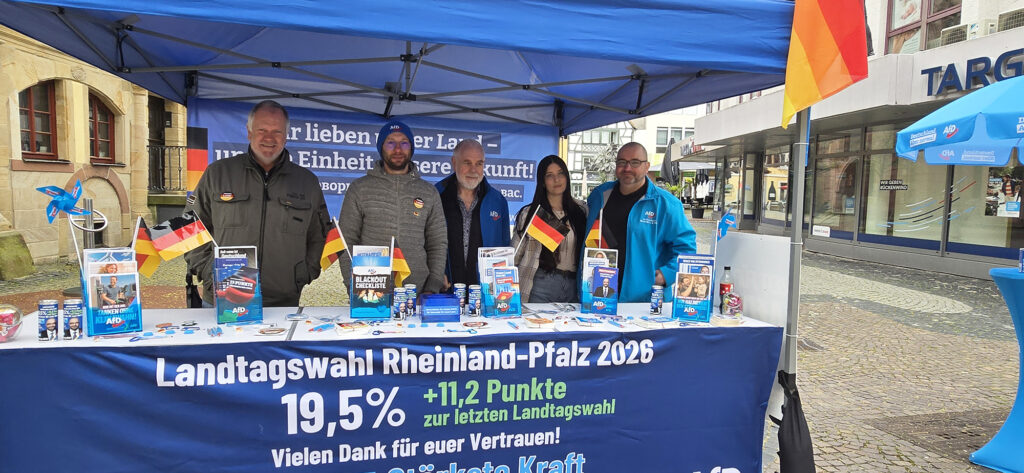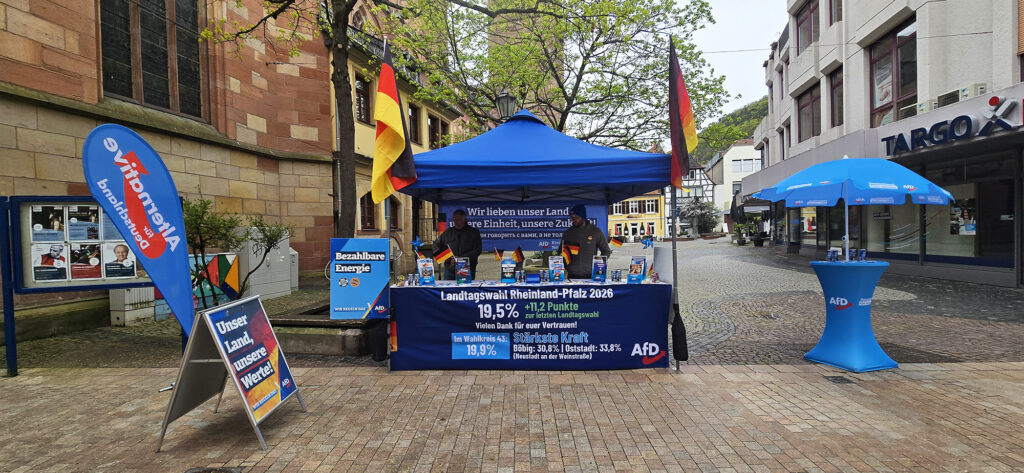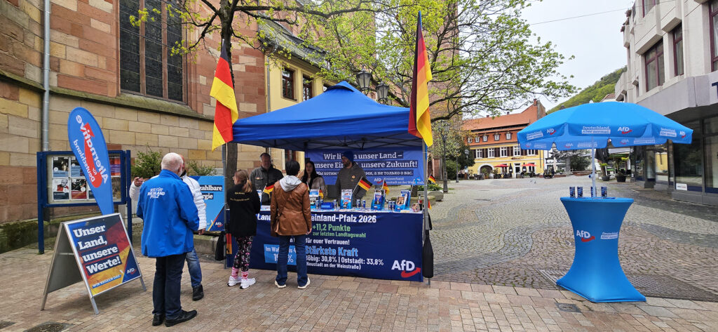 Heute am 12.04.2026 fand in Neustadt der Erlebnissonntag mit verkaufsoffenem Sonntag statt. Nachdem wir uns bereits gestern mit einem Infostand im Ortsteil Böbig für das Landtagswahlergebnis bedankt hatten, waren wir heute mit einem weiteren Infostand in der Fußgängerzone präsent.