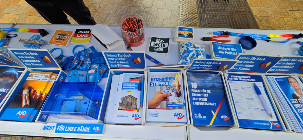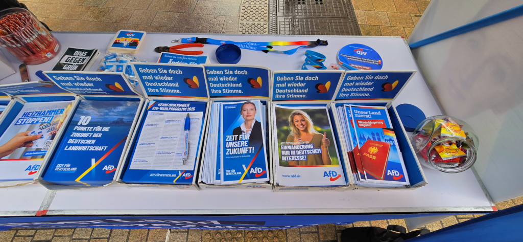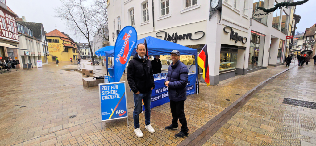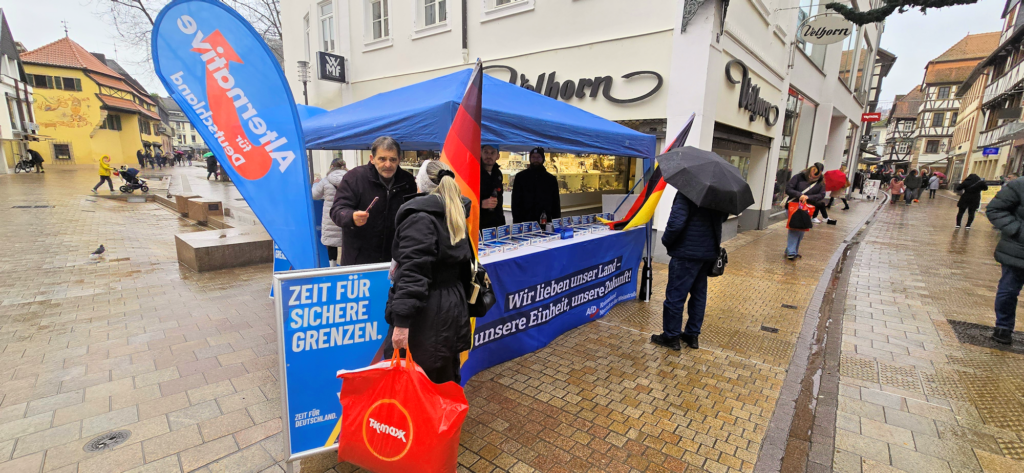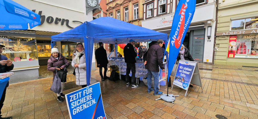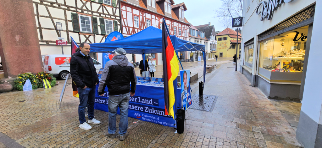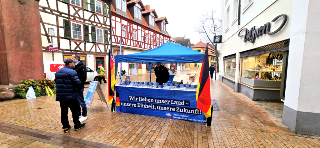 Für uns war der Tag ein voller Erfolg. Auch wenn zeitweise wetterbedingt wenig Betrieb in der Stadt war, wurde viel Infomaterial mitgenommen, ohne dass wir es aktiv verteilen mussten. Es fanden viele Gespräche statt, in denen wir teilweise auch darüber aufklärten, wofür die AfD wirklich steht und was Remigration bedeutet. Zudem wurden Aufnahmeanträge ausgefüllt – die AfD wächst weiter, auch in Neustadt.